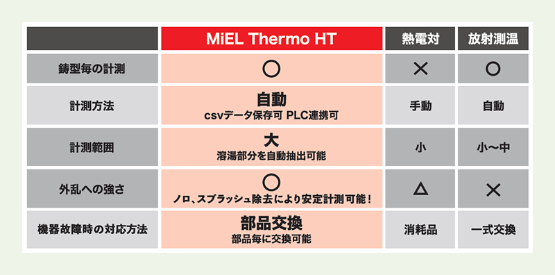 近年、製造業におけるカーボンニュートラルの実現は産業界全体の共通課題となっており、溶解工程で多くのエネルギーを使用する鋳造業界も対応が求められています。特にミスティーノ 入金不要ボーナス鋳造においては、品質不良や再溶解がエネルギー消費増加を招く要因となっているため、不良品の発生を防ぐことを目的として、金属溶湯の温度を適切に管理する必要があります。一般的には、熱電対を用いた温度計測が手作業でおこなわれ、特に多数の鋳型に連続的に注湯する注湯工程では、全数測温が困難であり、品質管理上の制約が生じていました。また、従来の放射温度計では、湯煙や溶湯表面のノロなどの外乱の影響で計測誤差が大きいことが課題となっていました。 当社では、画像解析技術を活用し、外乱に強く、鋳型ごとに計測が可能な非接触式の自動測温システムを開発しました。その結果、安定的な温度測定の他、トレーサビリティ・品質改善のためのデータとしての活用が可能になりました。
